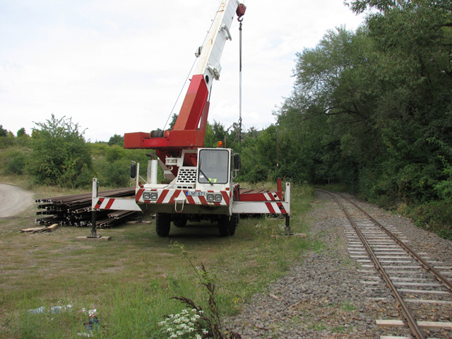 Első döbbenet akkor ért, mikor megláttam ezt a darus autót. Illetve a számtalan, 34 kg-os sínszálat. Itt tényleg történik valami...