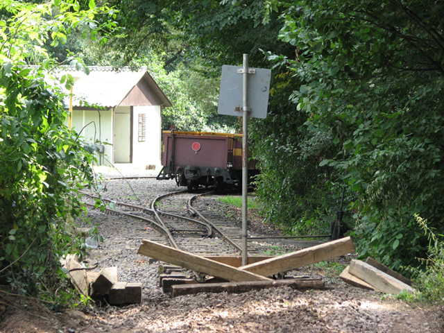 De a kis Mk48-as dízelduruzsolása felráz a kábulatból és némi lépcsőzés után elém tárul az egykori rakodó állomás területe, amin átdöcög a turistavonat. Az előtérben még további vágányok voltak, amiket az idő során felszedtek már. A váltókörzet még itt-ott utal erre az üzemre.