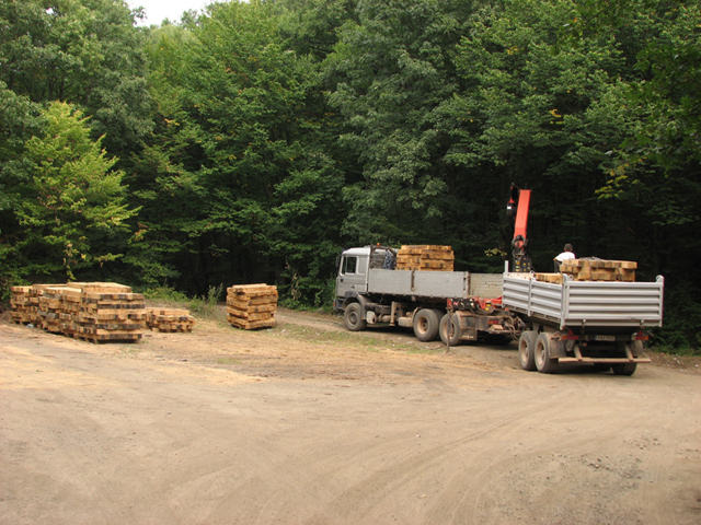 Az új szakaszon már példás rendben várakoznak a bekészített faaljak.