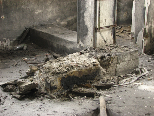 A nyomok arra utalnak, hogy a betonkorpuszban filmeket is forgatnak, de főként a lövöldözős ifjak lábnyomait leltem a por és hamu keverékében, ami mindent beborított.