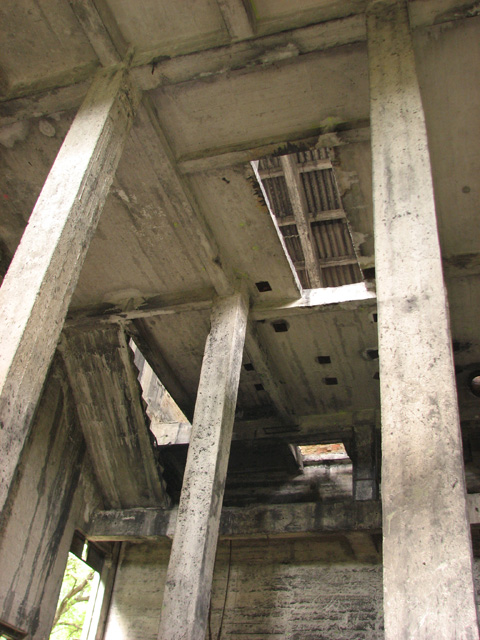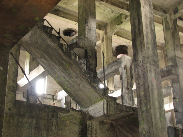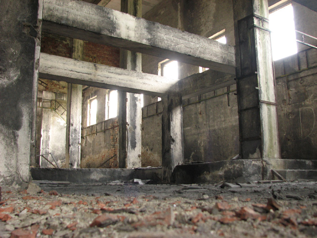 A betonépület belső világa ijesztő és lehangoló egyben. Nehéz elképzelni, hogy itt valamikor szorgos munka folyt.