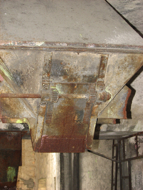 Az egykori kőbeöntő torok berozsdált zárszerkezete...