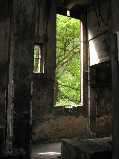 Míg bent a pusztulás, addig kint, az erdő visszahódítja a területét.
