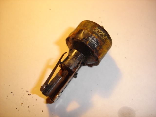 Mert ugye a rozsda itt sem kímélte a modellt. Az egyszerű acéllapon a csavarfurat átrozsdásodva. A réz csatlakozó és érintkező kapcsok mind oxidáltak. Viszont az izzó működőképes. Ebben a modellben nem irányváltó a világítás, viszont van hely bőven a későbbi átalakításra. Most azonban az eredeti állapot visszaállítása a cél, ezért meg kell tisztítani az alkatrészt.