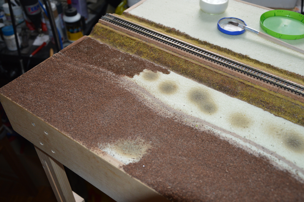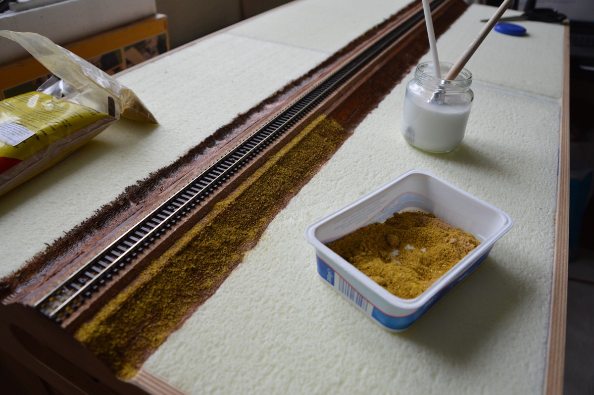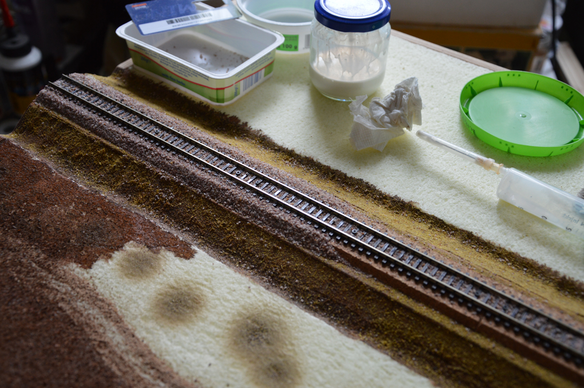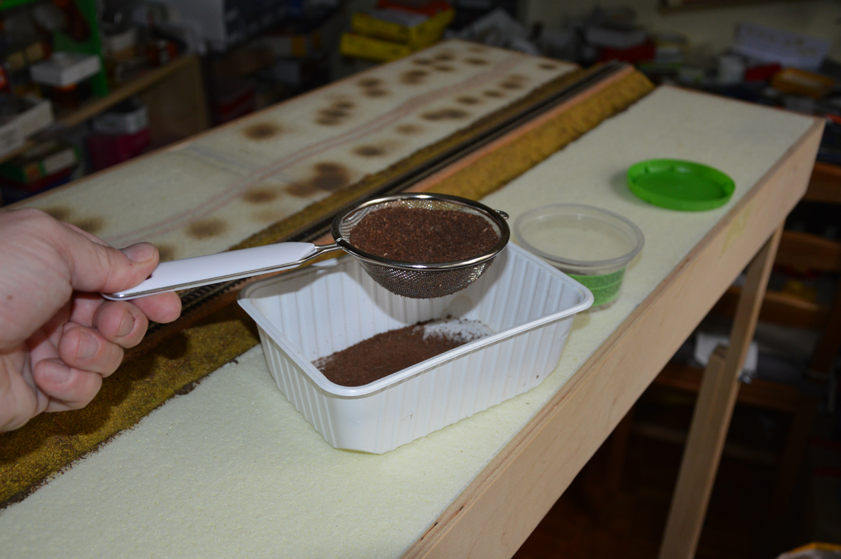 hígított faragasztóval és rászórtam a talajalapot. A kis mélyedések még