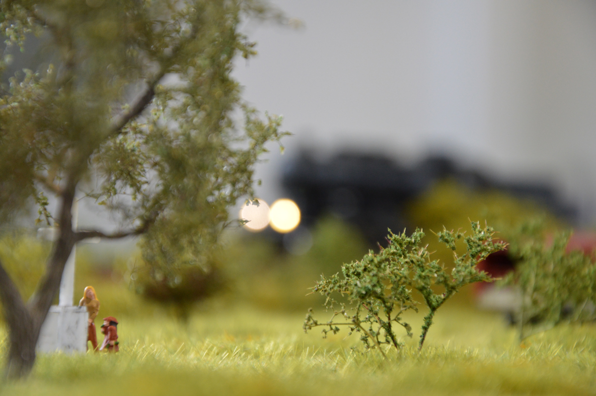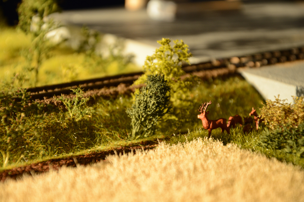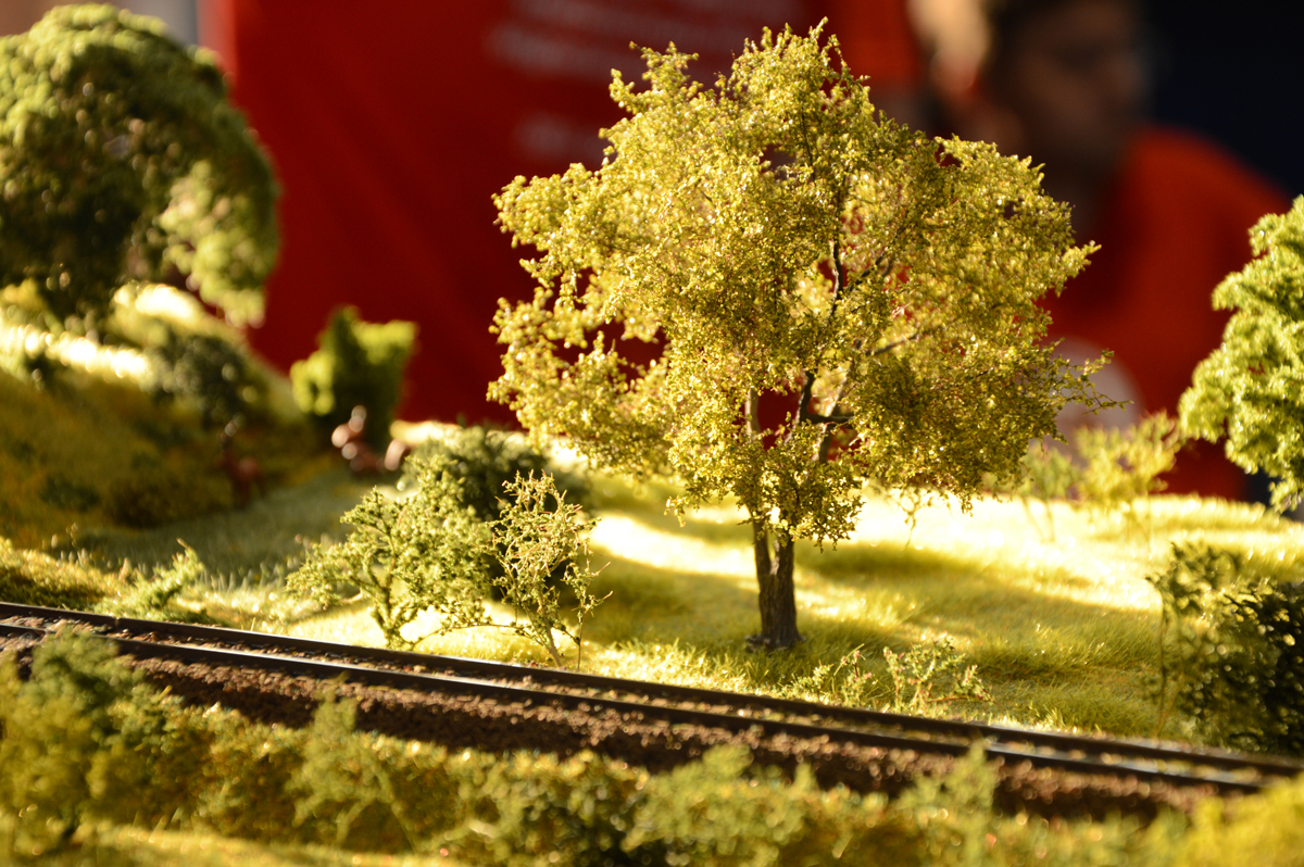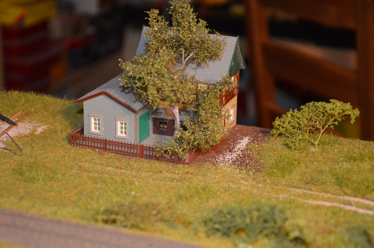 realisztikus növényzetet előre fúrt lukakba ragasztom. A kisebb cserjéket a