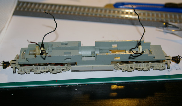 Természetesen a fémöntvény főkeretet is jól meg kellett tisztítanom, hogy sehol ne maradjon szivacspor. A mosás után visszakerültek a forgóvázak, mindkettőt már az új ómegák rögzítik. Kicsit szorulnak még, de ha megjáratom a mozdonyt, ráadásul sok ívben, akkor hamar bekophatnak és minden tökéletesen fog működni a kitakarított mozdonyban.