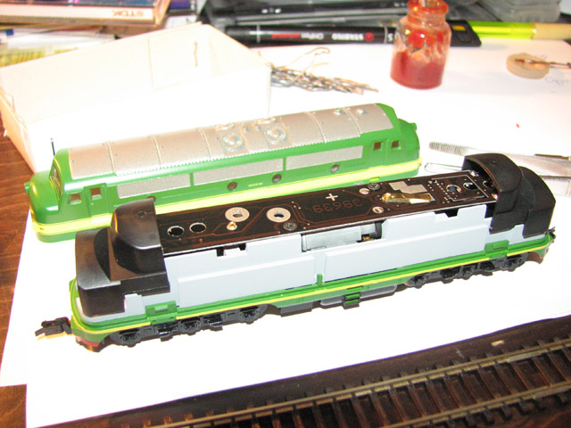 A második már jóval gyorsabban elkészül, pihenésként berakhatjuk a Bühler motort a fémöntvény mozdonytestbe. Ez a Nohab már az egységesített modellépítés jegyében készült. Ez alapján a mozdony belső felépítése számos másik típuséhoz hasonlít, a műszaki megoldások ésszerűek, egyszerűek, a modell könnyen szerelhető.